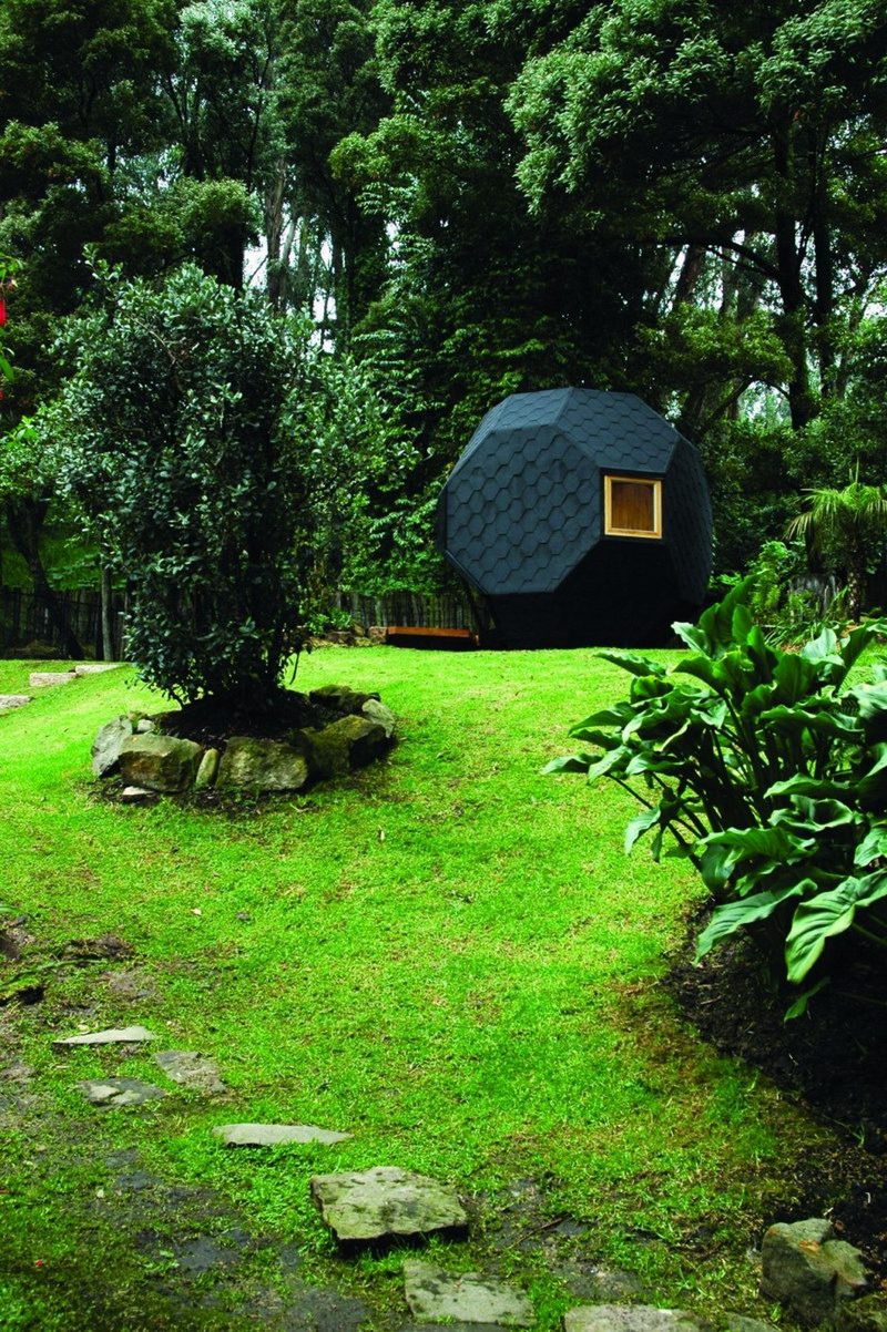 一對(duì)夫妻的郊區(qū)住宅的后院有一個(gè)多面體的小屋,他們把這間小屋抱著 長(zhǎng)期使用的想法,因?yàn)槟抢锟梢宰屗麄兒秃?.....