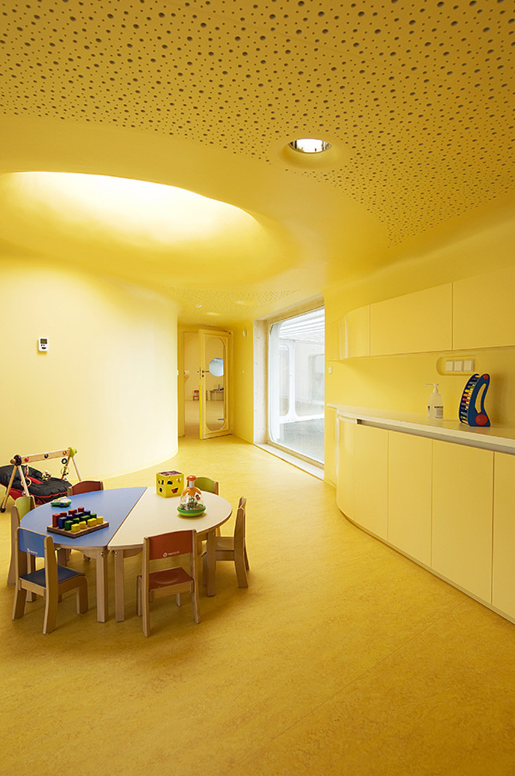 這個日托機構主要面對嬰兒而非兒童,所以要研究家長與工作人員的行為和情感,在建筑設計中綜合考慮嬰兒被保護、被關懷的需要。