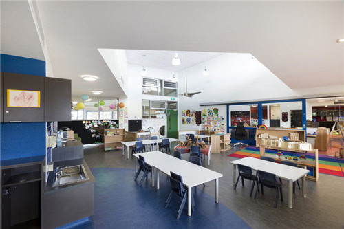 該建筑位于Plenty 河谷的中心位置,以蜿蜒的Plenty河為參照,創建出平滑的墻面和外廊曲線,猶如水流和漩渦穿過中心空間,而屋頂邊線則是對遠處Kinglake山脈輪廓線的呼應。幼兒園設計