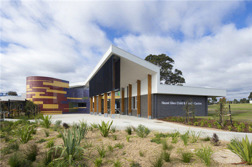 Hazel Glen兒童家庭中心使用釉磚拼圖創造出一種有活力的效果,加上豐富的木材表達,共同構筑一個熱情的家庭中心。這個藝術式的建筑包括四個兒童保育室、婦幼健康咨詢室、大小不一的活動室以及一個靈活的中心集合空間。
