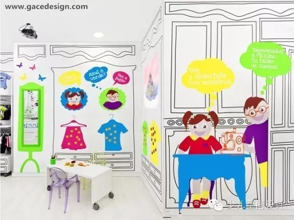 走進這家店的時候,孩子們歡呼雀躍,馬上就喜歡上這里了,而所有的樂趣來源很簡單,都是來自歡快的圖形細節。幼兒園室內設計