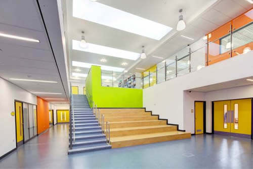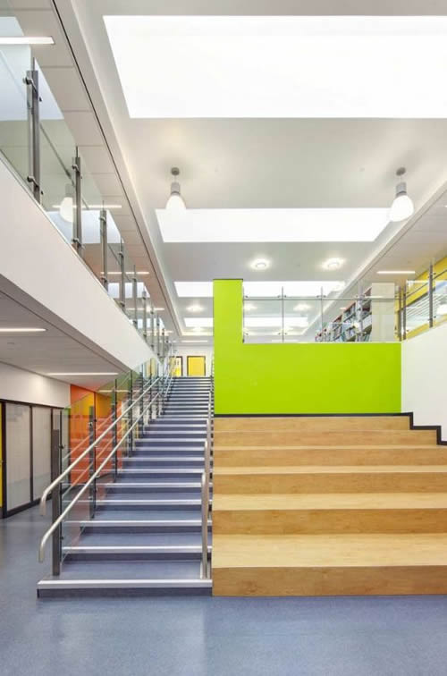 中央學(xué)習(xí)空間自然采光,通過一排排的北向窗戶進行通風(fēng),這些窗戶與建筑管理系統(tǒng)融為一體,以確保創(chuàng)造一個舒適的學(xué)習(xí)環(huán)境,同時減少生命周期成本。廣場為學(xué)生和來訪者提供了清晰、明確的方向?qū)б捎诳臻g開放,布局暢通,因此有助于減少欺凌弱小的行為發(fā)生。