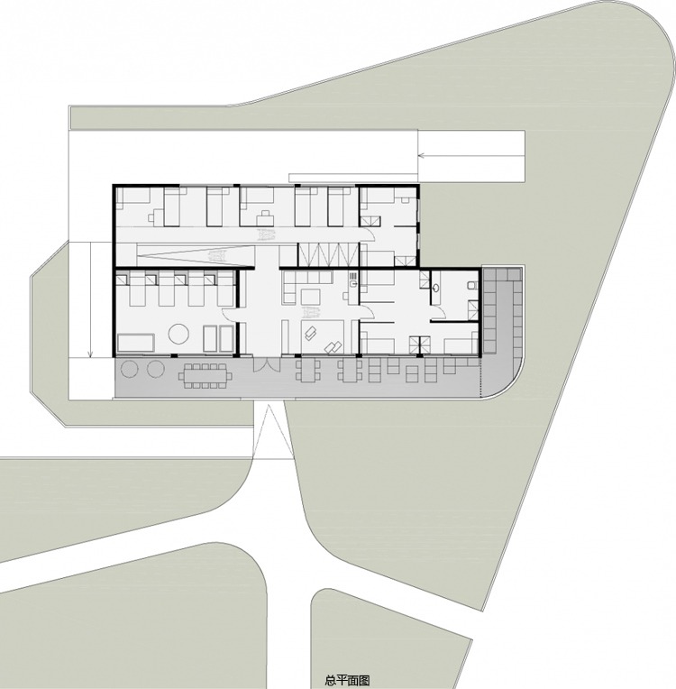 公共區域是聚集和玩耍空間,全面重組不同的功能空間,連接不同樓層的坡道成為一個統一元素,象征著天空、大地和海床。