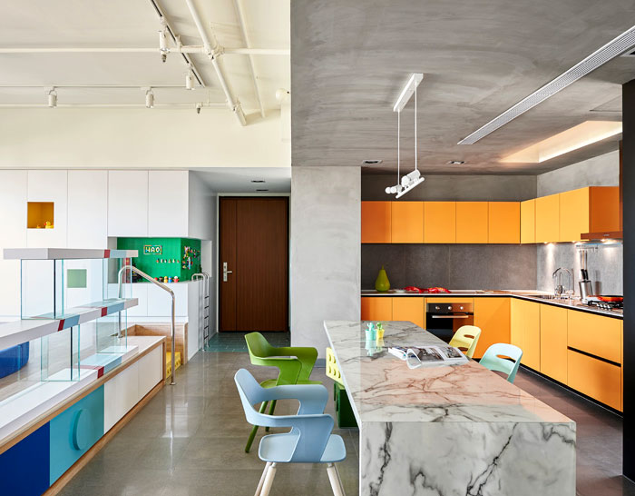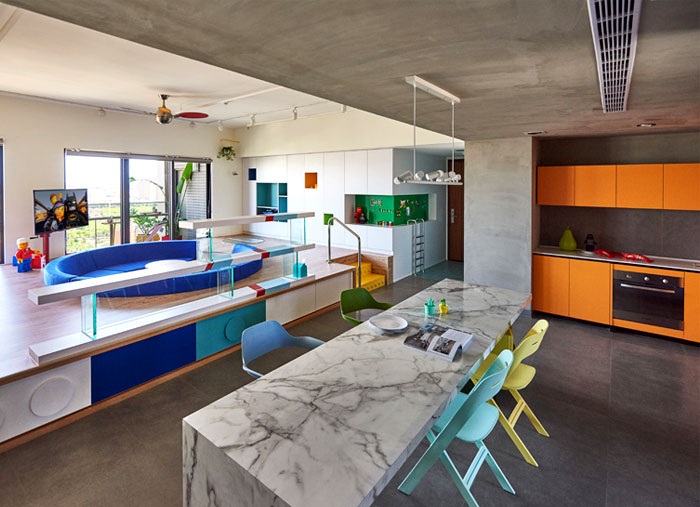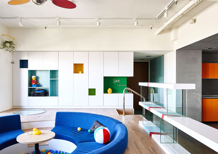 這是位于臺(tái)灣高雄的一座公寓,年輕的屋主希望將原先的公寓改造,作為樂(lè)高發(fā)燒友,他們希望新的設(shè)計(jì)可以融入樂(lè)高的元素,不僅滿(mǎn)足了自己的喜好,也讓家中的小朋友有娛樂(lè)的空間。