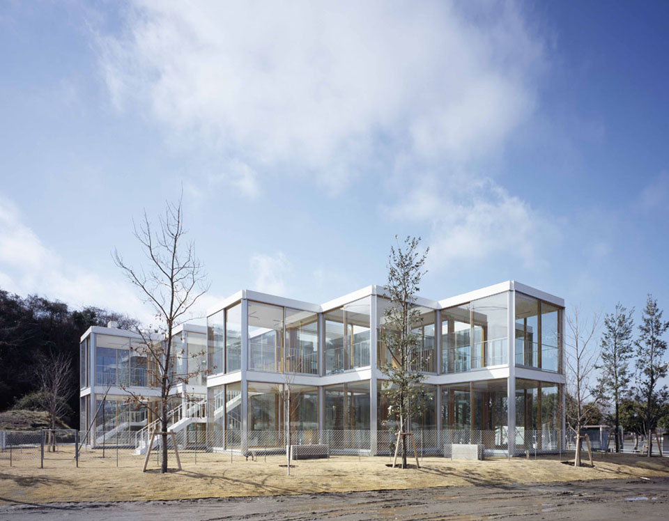 橫濱市一片美麗的森林高地的一塊空地上被用來建筑基督教會學習,其中一層作為幼兒園,二次則是高年級學校,位于森林四周肯定是有美麗的自然環(huán)境的,所以怎么去最大限度的發(fā)揮這個優(yōu)勢是設(shè)計師展開幼兒園設(shè)計的個需要考慮的,因此設(shè)計師設(shè)計了一個向著四周全面開放的透明建筑,而且還在建筑的布局中在院子內(nèi)種植著綠樹,園內(nèi)院外的綠植相映形成一道靚麗的風景。