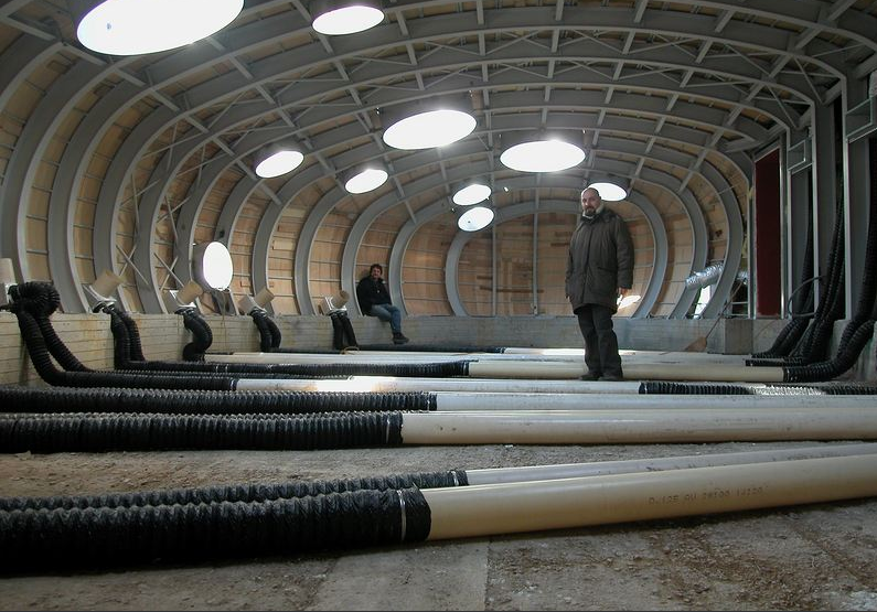 在另一邊,我們能看到有著其他特殊用途的房間:宿舍,美術室及活動室。這是一個富有參與性的空間。在建筑內部,你會感覺置身于一個地板結冰的洞穴里。而建筑外部的設計看起來就像是一個降落在花園里的宇宙飛船。光線從18個舷窗透進來,這些舷窗分別安裝在墻壁和拱頂的不同位置,而且光線的位置總是隨著時間和季節的變化而變化。