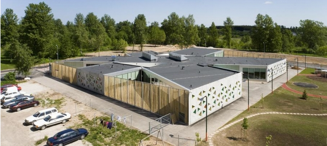 位于塔爾圖愛沙尼亞樂天幼兒園,幼兒園布局成六角形這是一個有著六片就像是翅膀一般的花瓣的花朵,幼兒園在一個非常有趣的地方就在所謂的唐人街也是前蘇聯軍事要塞的地點,這所樂天幼兒園就建筑在軍用的公寓樓旁邊。