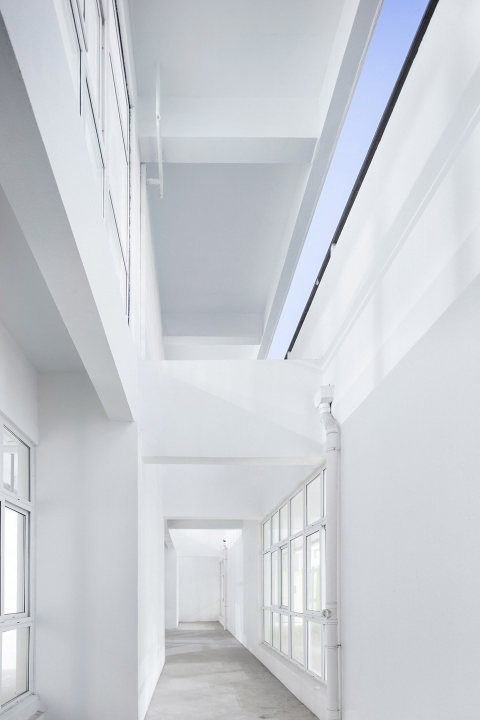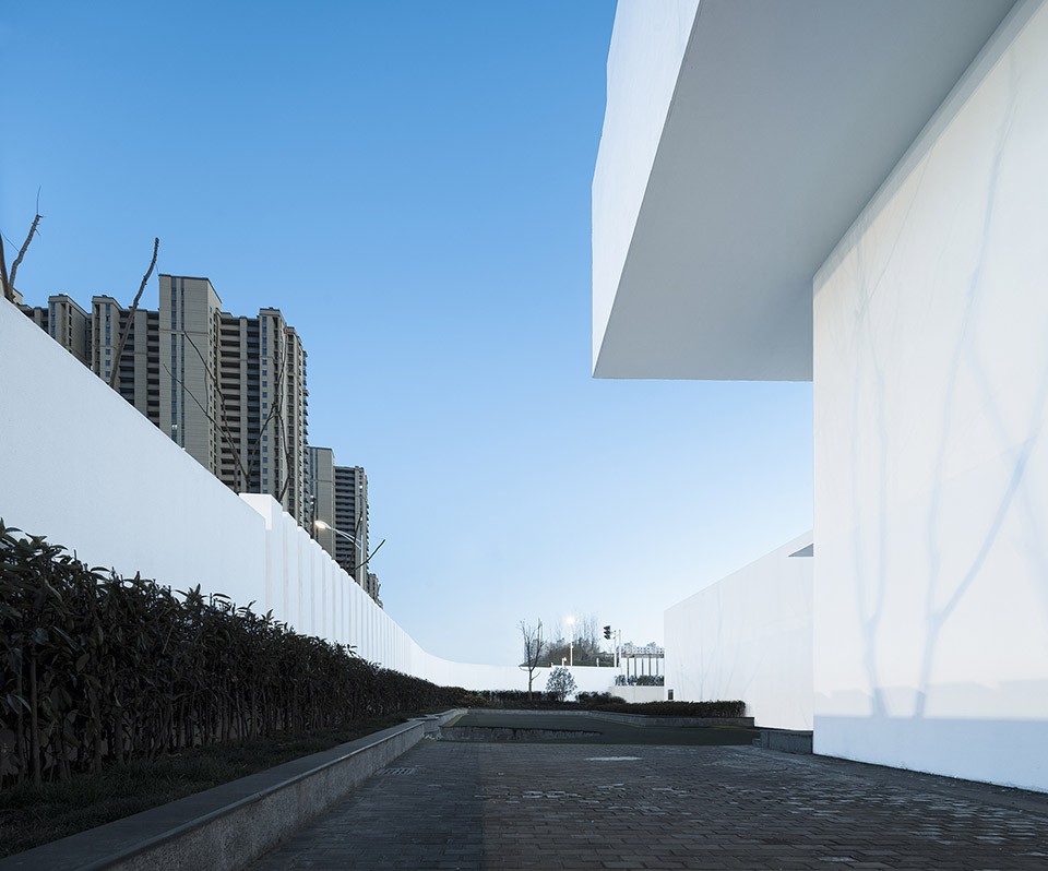 幼兒園進一步把入口層體積退后,讓第二層盒子漂浮在空中,進一步分解體積,讓建筑看上去像只有一層的樣子。系列處理的目的都是讓建筑體積弱化,增加親切感,減小幼兒園建筑對幼兒和兒童的壓迫感。幼兒園建筑中間的內院使一層北側行政和服務空間也可得到足夠的采光,并保證每歌班級都可以得到充足日照。在景觀方面,每個班級都有對應的綠地供幼兒活動。(幼兒園設計