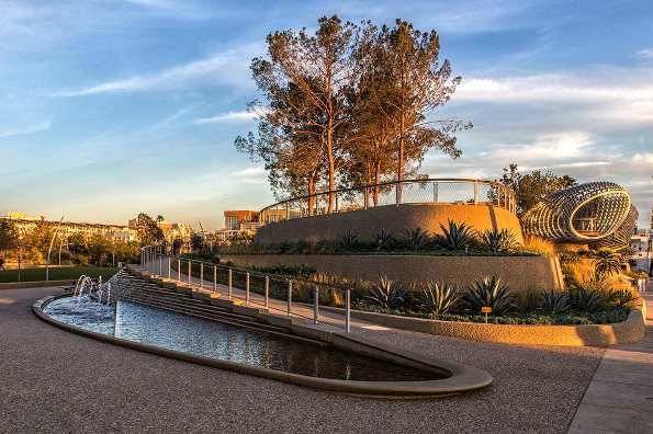 該公園的設計方案是在經過一個寬泛的社區討論與加工之后才完成的,據悉,該公園的設計是從南加州的河谷景觀中得到的靈感,河谷的水流和溝壑形狀是該公園場地的雛形。