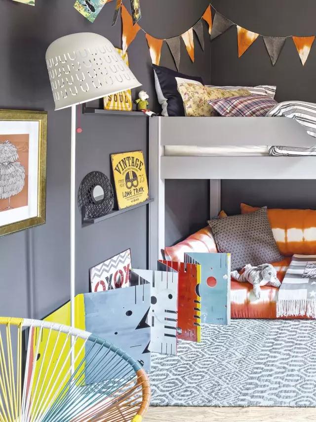 當然,兒童房的色調是需要不斷改變的,幼兒時期可能用一些強烈的對比色和夸張的圖案來激發他的聯想。少兒時期改用中性一點的,冷一點的色調,才符合他更為沉穩的審美需求。