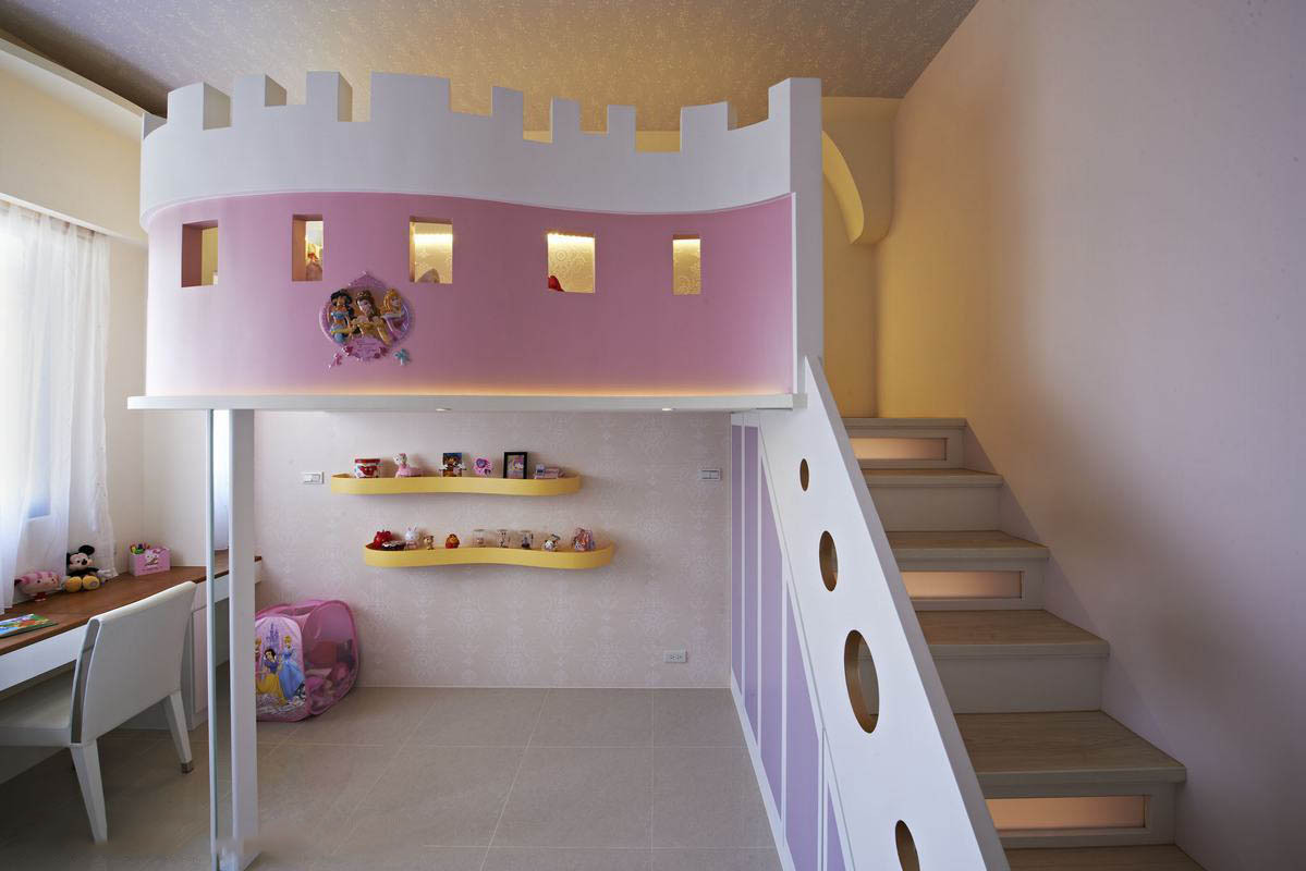 另外,兒童房的陳設品也可以隨年齡不同而予以變換,如嬰兒期可貼一些色彩豐富艷麗的持圖,幼兒期則放些毛絨動物或布娃娃, 為孩子營造一個溫馨的童話世界。學齡前則可以在墻上掛中國地圖、世界地圖、桌上擺地球儀等,便于孩子探索科學,保持濃厚的學習興趣。兒童房設計充分體現著設計師和父母對他們濃濃的愛。