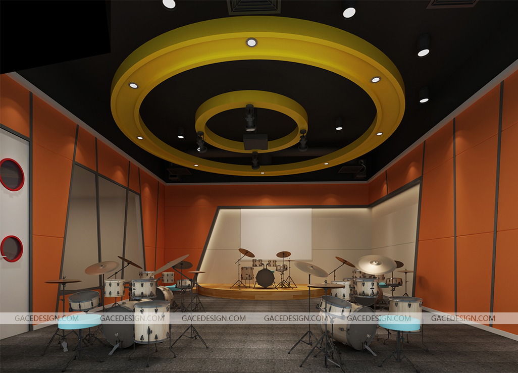 外型上:經(jīng)過(guò)描繪將音體室的功用性非常好的表現(xiàn)出來(lái),以此到達(dá)教育性、安全性、開(kāi)放性的準(zhǔn)則。