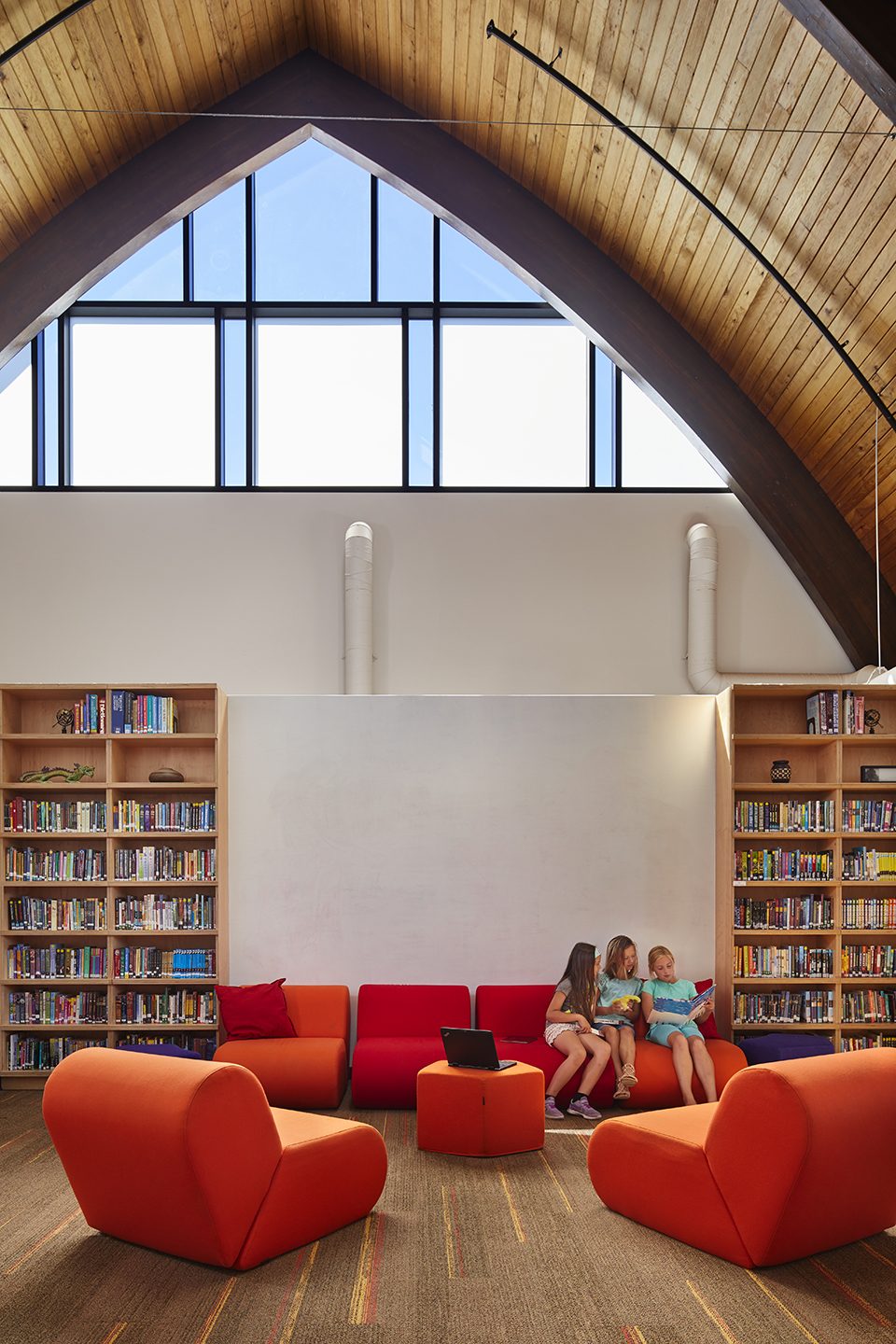 設計的挑戰在于如何使既有建筑與新的入口大廳形成連接,同時傳達出一種統一感。新的建筑提供了大量具有鼓勵性的學習環境。嵌入教室墻壁的創意空間為自主交流和非正式的小組教學提供了靈活的場所。其他空間也致力于促進互動創新和引發好奇心。新的入口在建筑中心構成了一個透明的集會和展示空間,使家長、教學人員和學生能夠在這里聚集和溝通。5.5萬平方英尺的建筑空間(既有面積3.5萬平方英尺/擴建面積2萬平方英尺)最終將學校的過去與未來連接在一起。
